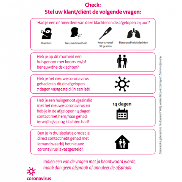 – er zullen desinfecterende middelen beschikbaar zijn bij binnenkomst;