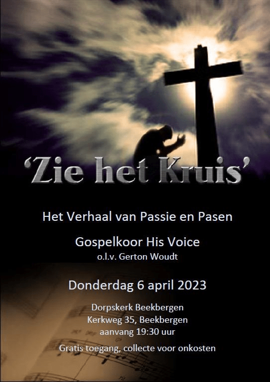 In de Stille Week, op witte donderdag 6 april 2023, zingt Gospelkoor His Voice weer ‘Zie het Kruis’ in de Hervormde Kerk in Beekbergen. Aanvang 19:30 uur.