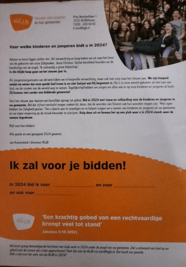 Wij hopen dat u gehoor geeft aan deze oproep tot gebed voor de jeugd van onze gemeente.
